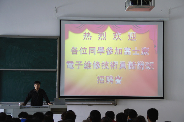 3月28日上午,富士康科技集团“电子维修技术员储备班”宣讲会在阶梯教室三举办,2012级200余名学生参加了宣讲会。