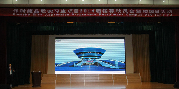 保时捷品质实习生项目校园日活动,是保时捷(中国)对合作院校即将参加实习的毕业生进行项目介绍和招募前的动员。本次活动是继今年五月份后保时捷第二次在我院召开的校园日活动,此次将从我院大二相关专业学生中严格选拔富有潜力的优秀学员,组建“保时捷班”,这些学员经过遴选后将在保时捷中心进行9个月的以生产实习训练为主导的培训,并从事各种实际业务,达到项目毕业资质并通过考核的毕业生将取得保时捷铜级技师认证资格,能够加入保时捷中心,获得全职工作机会。