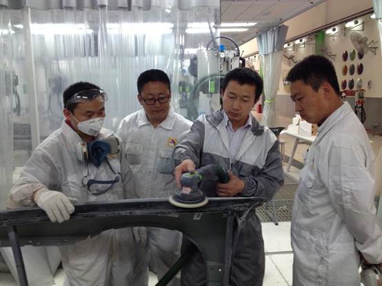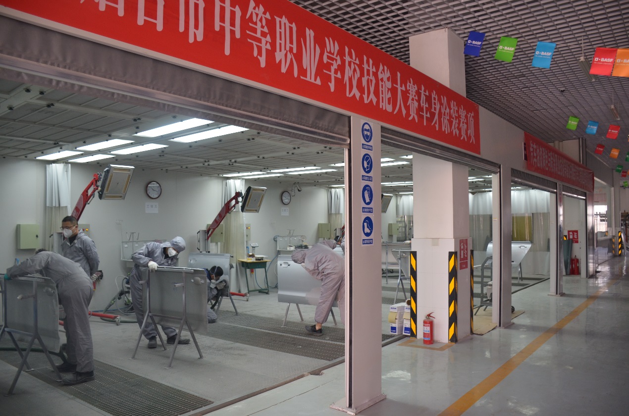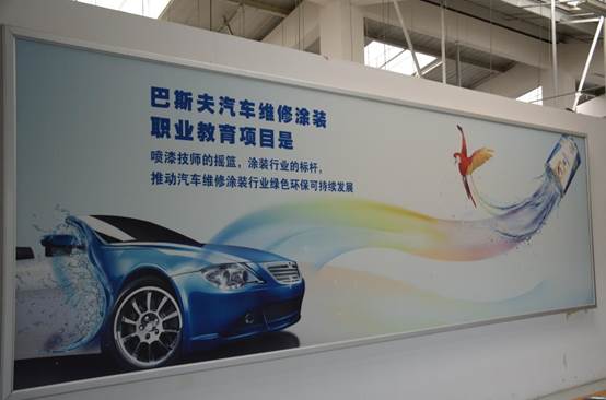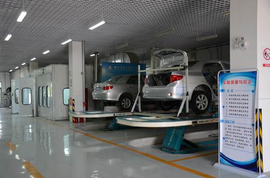实训设备价值400多万,主要培训项目包括:底材的清洁研磨、原子灰刮涂打磨、遮蔽、底漆和中途底漆的喷涂、面漆颜色调整、面漆的喷涂、喷漆缺陷处理等。