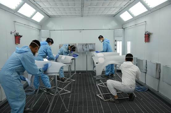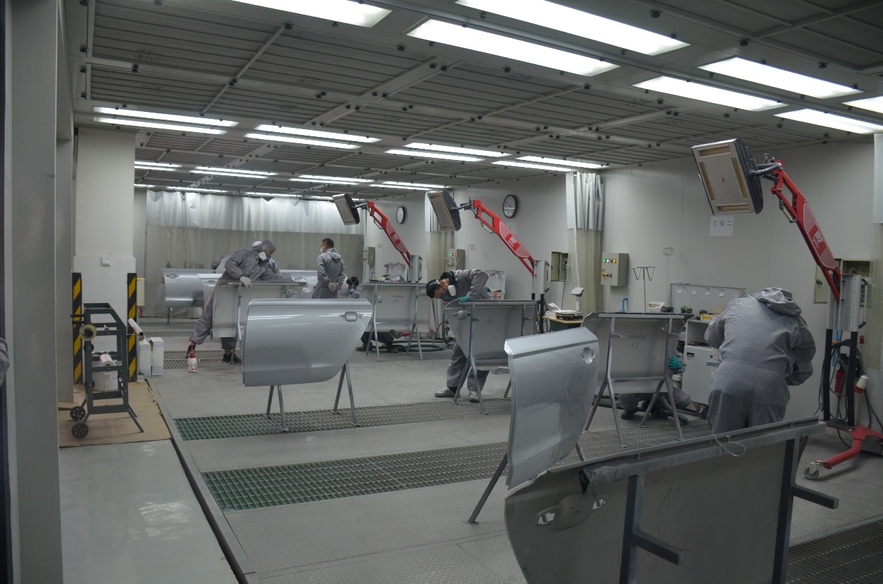 2.拥有先进的电加热烤漆房2个,配备先进的萨塔底漆、面漆喷枪,可满足10人同时操作;