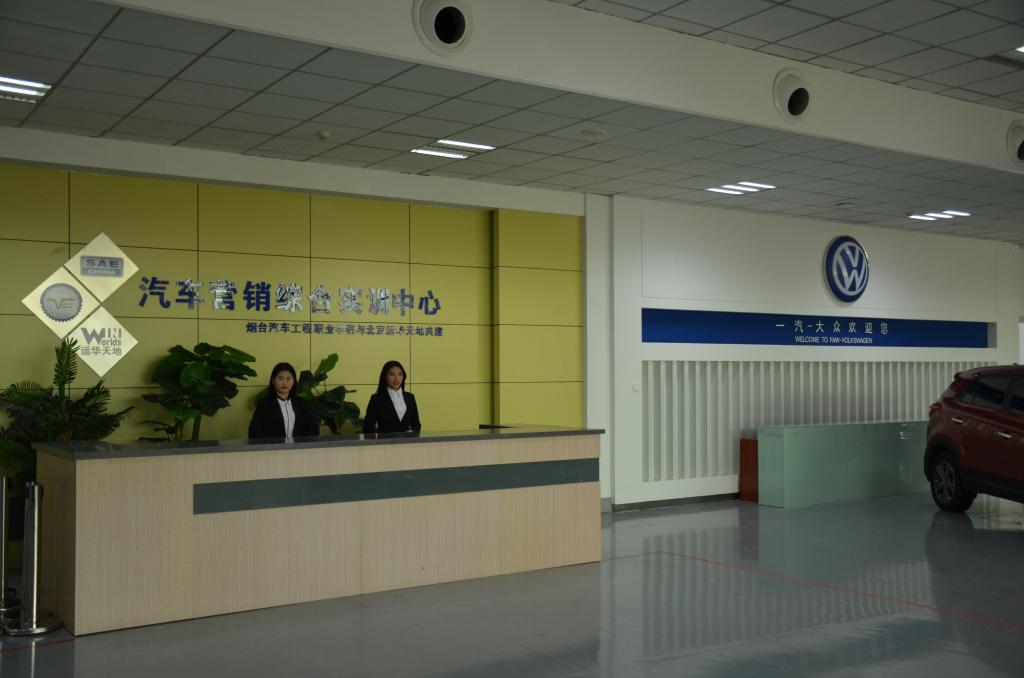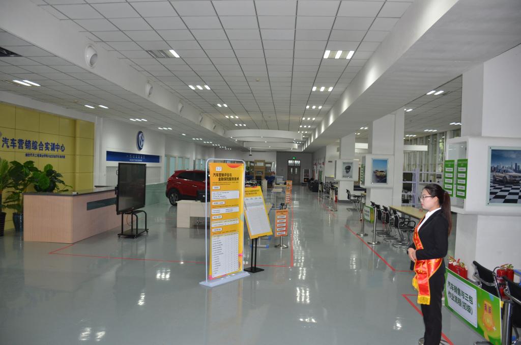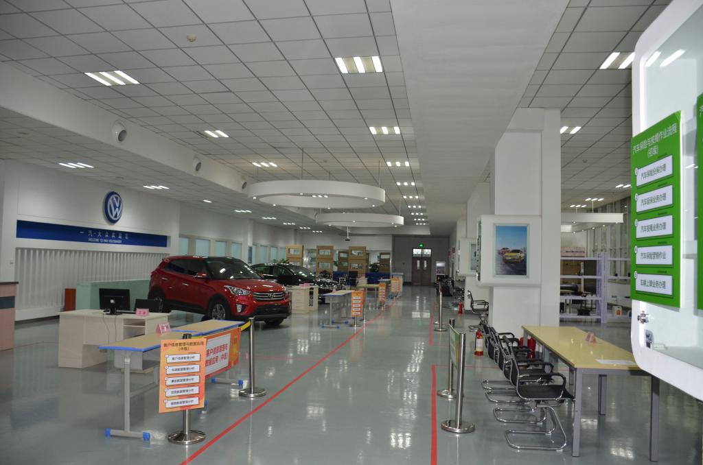 汽车营销综合实训中心是汽车营销服务系和车辆运用工程系共同建设的一个有关汽车营销的综合实训室,依托“一汽-大众”校企合作为平台,以“情境教学,建设与汽车4S企业零距离对接的校内实训基地”为指导思想,搭建的一个近乎真实的汽车4S企业硬件模拟环境。本实训室承担的实训项目包括:客户预约、前台接待、结算收银、售后服务、精品介绍、进厂维修、备料估价、派工、维修、领料、总检、结算、收款、出厂、回访跟踪等。