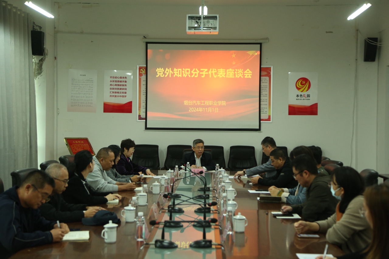 11月1日,烟台汽车工程职业学院召开党外知识分子代表座谈会,就学院高质量发展征求意见。学院党委书记秦桂建,党委副书记曲耀春出席会议。校内各民主党派成员、党外教师代表参加会议。