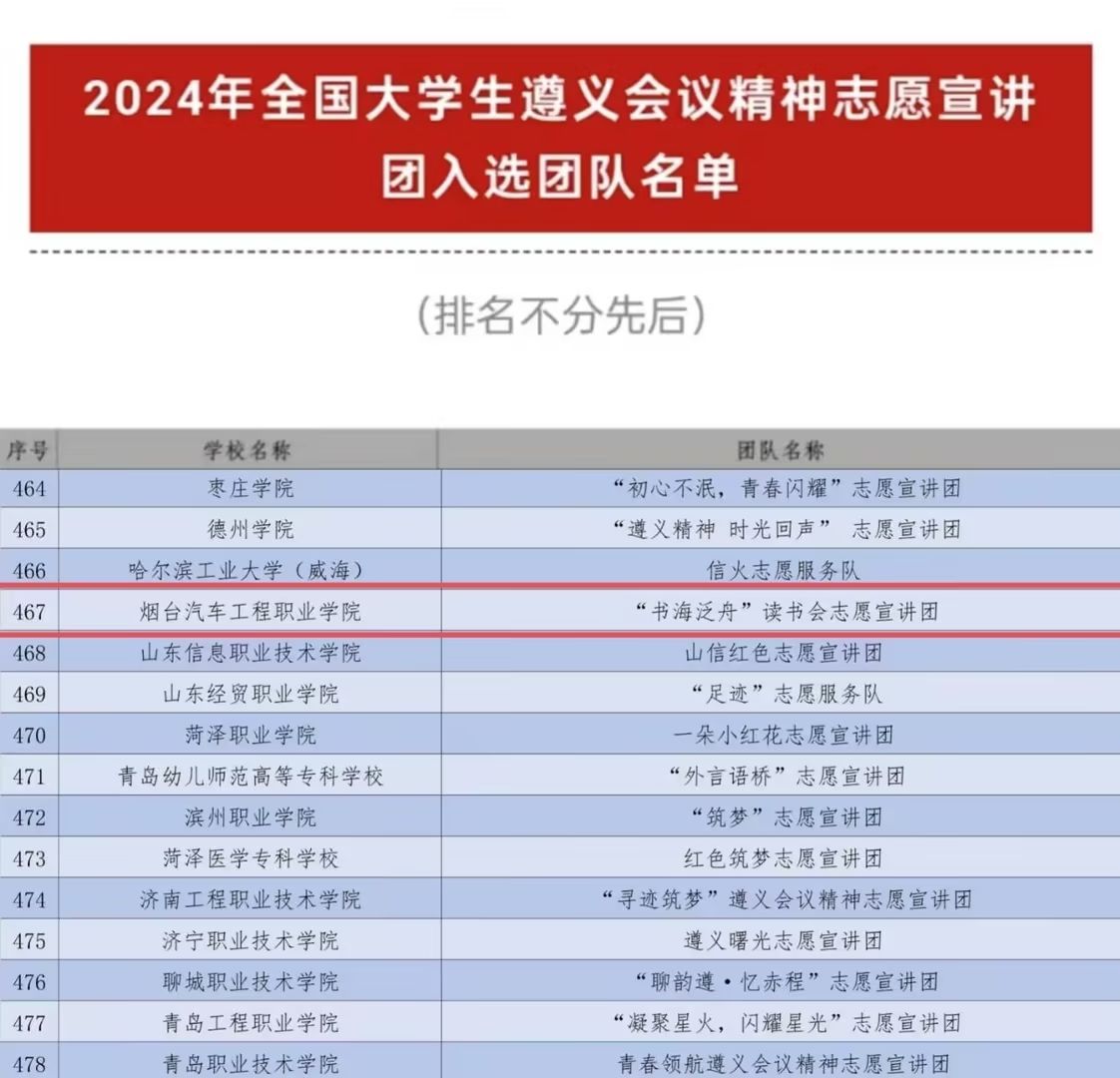 为深入学习宣传贯彻习近平新时代中国特色社会主义思想和党的二十届三中全会精神,深入贯彻落实习近平总书记提出的“传承红色基因、讲好遵义故事”的重要要求,落实“强国复兴有我”群众性主题宣传教育活动相关要求,引导青年学生弘扬遵义会议精神,赓续红色血脉,团中央青年志愿者行动指导中心、中共遵义市委、共青团贵州省委联合发布了《关于遴选2024年全国大学生遵义会议精神志愿宣讲团的公告》。活动得到了各高校志愿服务团队的广泛关注和积极参与。主办单位对所有材料进行了认真审阅,最终共有来自南开大学、四川大学、兰州大学等722所高校的1000支大学生志愿服务团队入选,我院“书海泛舟”读书会志愿宣讲团名列其中。