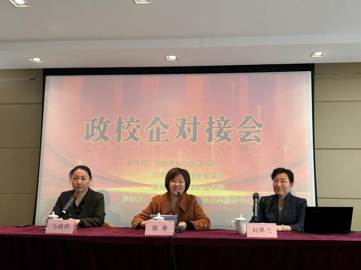2024 年 11 月 19 日,烟台汽车工程职业学院联合福山区工信局、烟台城市科技职业学院在福山区工信中小企业公共服务中心举办了“福山区政校企对接会”。福山区工信局副局长张希、烟台汽车工程职业学院教务处负责人、烟台城市科技职业学院负责人及区内 80 余家企业负责人等出席会议。
