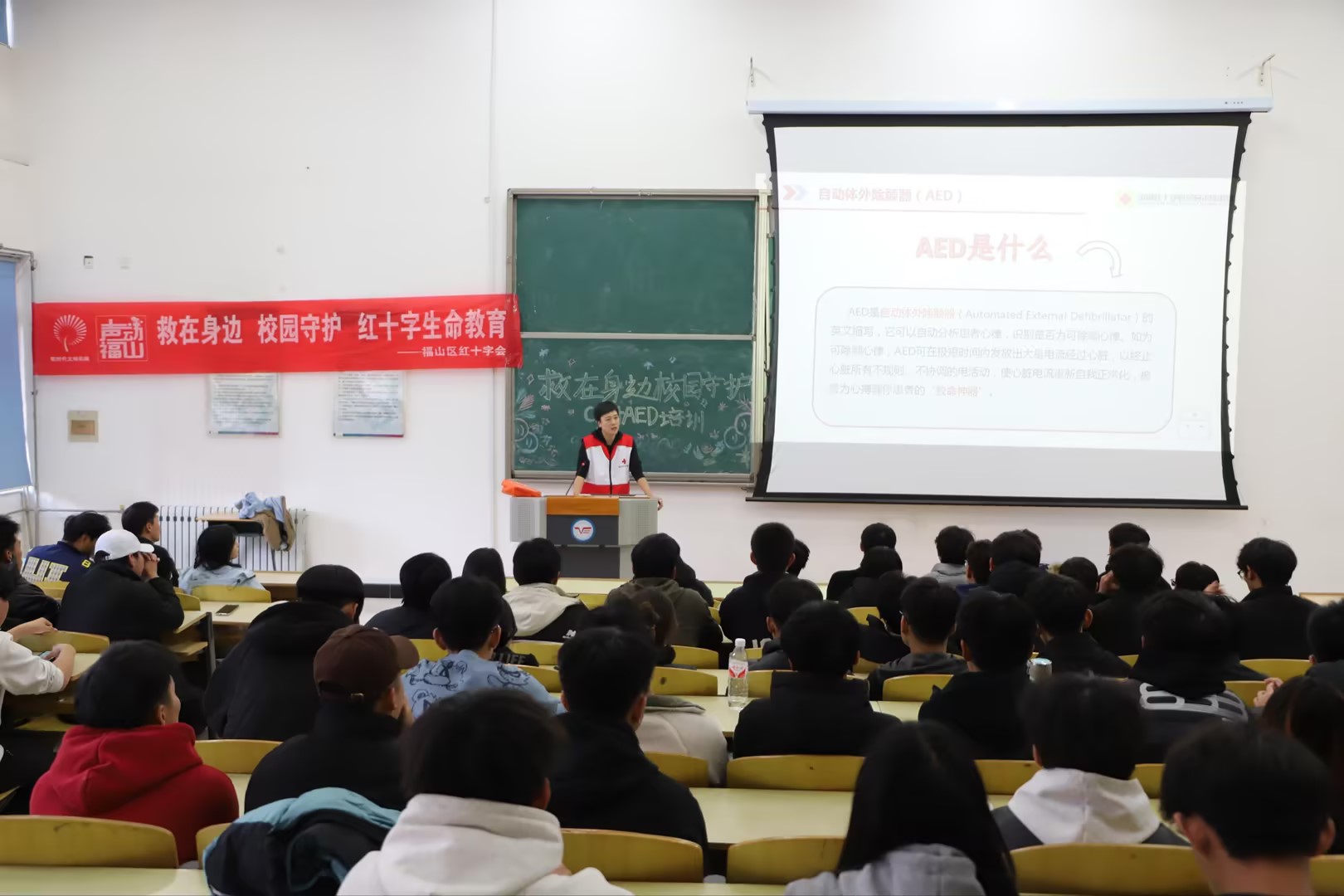 为大力弘扬“人道、博爱、奉献”的红十字精神,着力强化在校师生的应急救护意识,切实提升应急救护能力,11月22日,烟台汽车工程职业学院携手福山区红十字会,精心组织开展了心肺复苏(CPR+AED)培训活动,红十字志愿服务队120名在校学生踊跃参与。