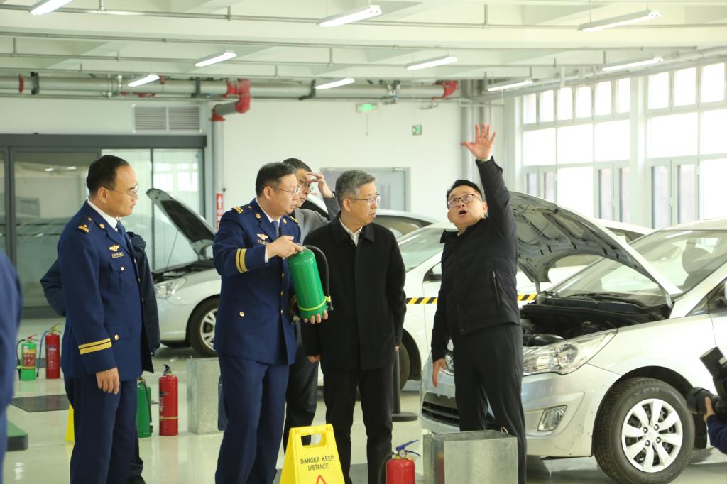秦桂建、陈湘华一行实地参观考察了机动车火灾调查实训基地的教学实训场地,并就相关情况进行了现场交流。