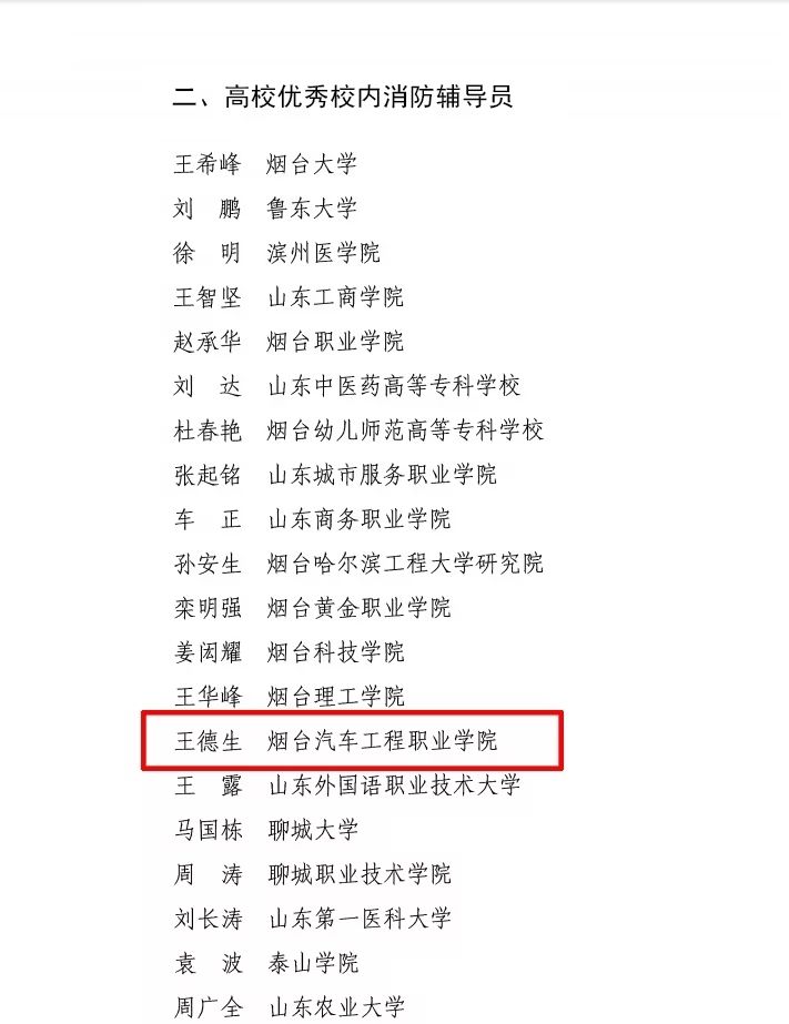 近日,山东省消防救援总队山东省教育厅发布《关于公布2024年度“优秀校内外消防辅导员”的通知》(鲁消〔2024〕180号),我院辅导员王德生荣获2024年度山东省“高校优秀校内消防辅导员”荣誉称号。