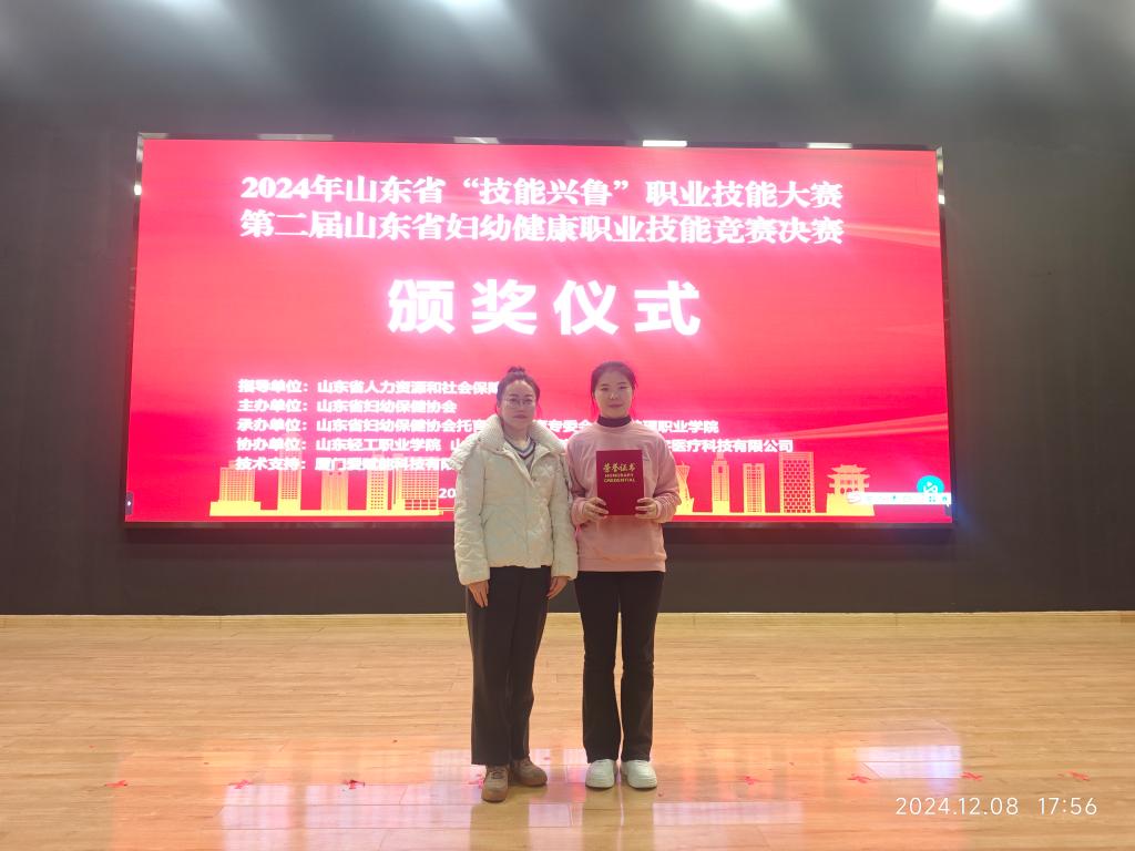 12月7日-8日,2024年山东省“技能兴鲁”职业技能大赛第二届山东省妇幼健康职业技能竞赛决赛在潍坊文华教育集团落下帷幕。本次比赛吸引了全省71所院校、妇幼保健院、托育中心等单位共计366名选手参与。经过激烈角逐,我院人文社科系教师吕艾颖、宫凡钦,分别获得职工组二等奖、三等奖,夏竹青老师指导的23级婴幼儿托育服务与管理专业学生吴一凡获得学生组二等奖的好成绩。