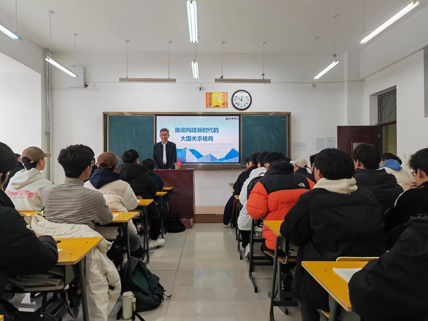秦桂建书记以“推动构建新时代的大国关系格局”为题向智能汽车工程系24级新能源汽车检测和维修技术2班的学生讲授思政课。他以“何为百年变局”为题引发学生思考,深入分析当下国际体系多极化的趋势和国际秩序变革的深层原因,以详实的案例和数据,讲述中国同各国发展友好合作的伟大实践与世界贡献,结合课程内容鼓励学生自立自强、勇于担当、相互尊重,厚植家国情怀,与祖国同频共振,引发学生的强烈共鸣。