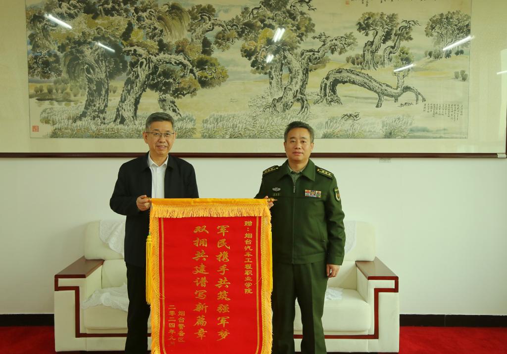 12月26日上午,烟台警备区政治工作处郑金岩主任一行来到烟台汽车工程职业学院,举行了一场庄重而温馨的锦旗赠送仪式,为校园注入了浓浓的军民鱼水情。