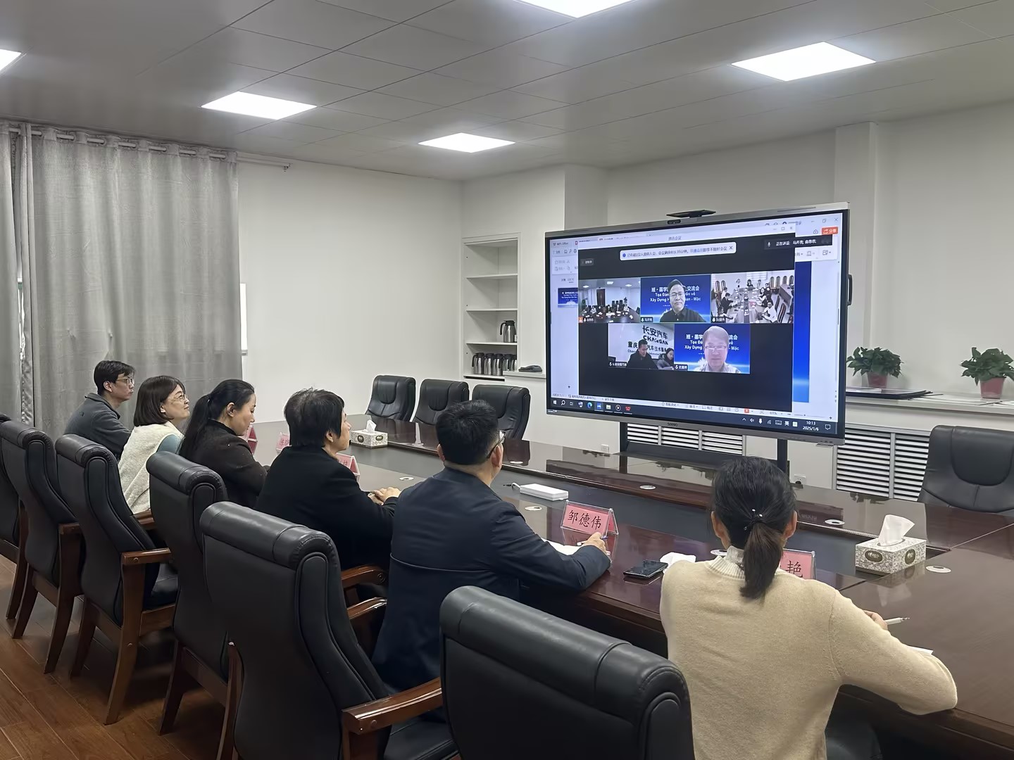 座谈会最后,四方代表在线上拍照留念,共同见证了这一重要时刻。此次座谈会的成功举办,不仅为烟台汽车工程职业学院与越南河内工业职业大专学院及来华在线的深入合作奠定了坚实基础,也为推动职业教育国际化发展注入了新的活力。