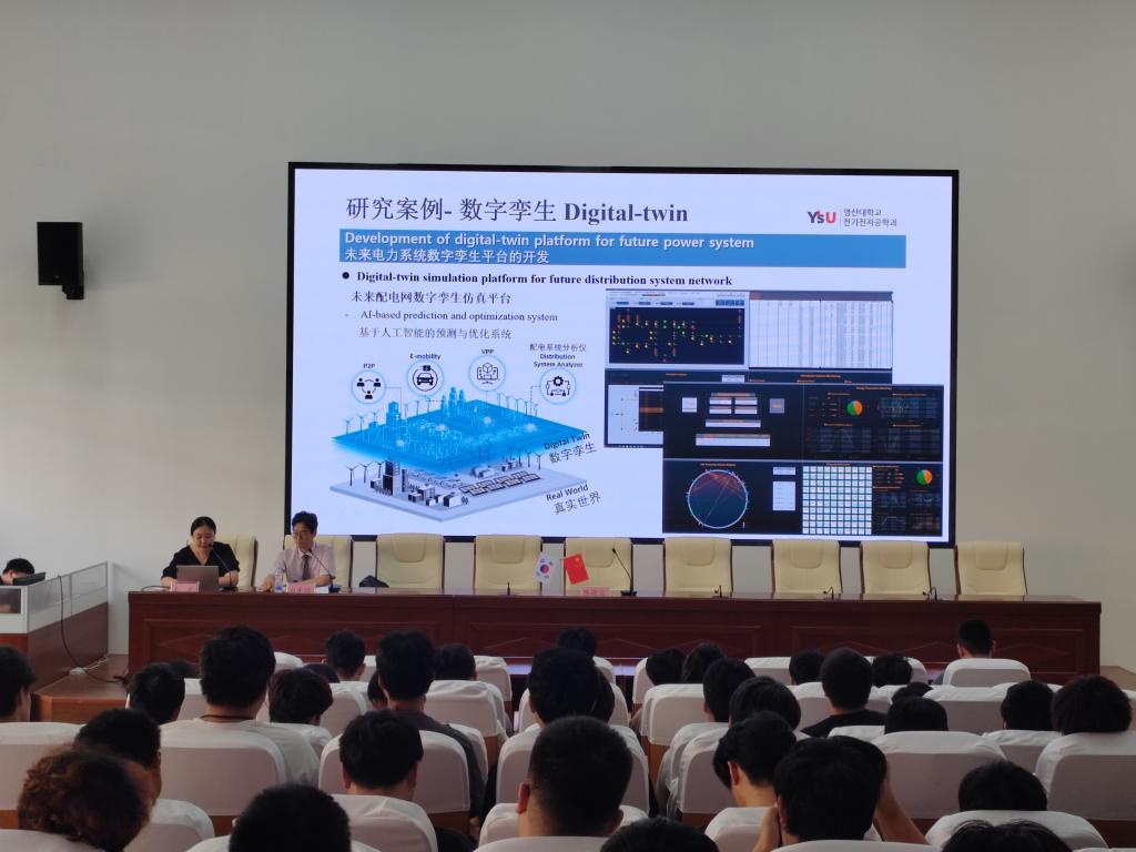 访问期间,白教授参观了我校智能控制新技术研发中心及电子技术研究所,并为我校师生作《智能时代的技术革新:智能AI与机器人自动化在电气电子领域的应用与实践》专题报告。白承焕教授重点介绍了智能AI与机器人自动化在电气电子领域的应用与实践。他介绍了数字孪生技术在电气电子领域的创新应用,展示了其团队研发的上肢康复机器人系统,分享了虚拟电厂(VPP)和车网互动(V2G)等前沿研究成果。讲座结束后,白教授与我校电子工程系师生进行了深入交流。与会师生就智能控制算法、机器人路径规划等技术问题与白教授展开讨论,现场学术氛围浓厚。此次讲座为师生提供了了解国际前沿技术的宝贵机会,学校将继续拓展与海外高校的学术合作。