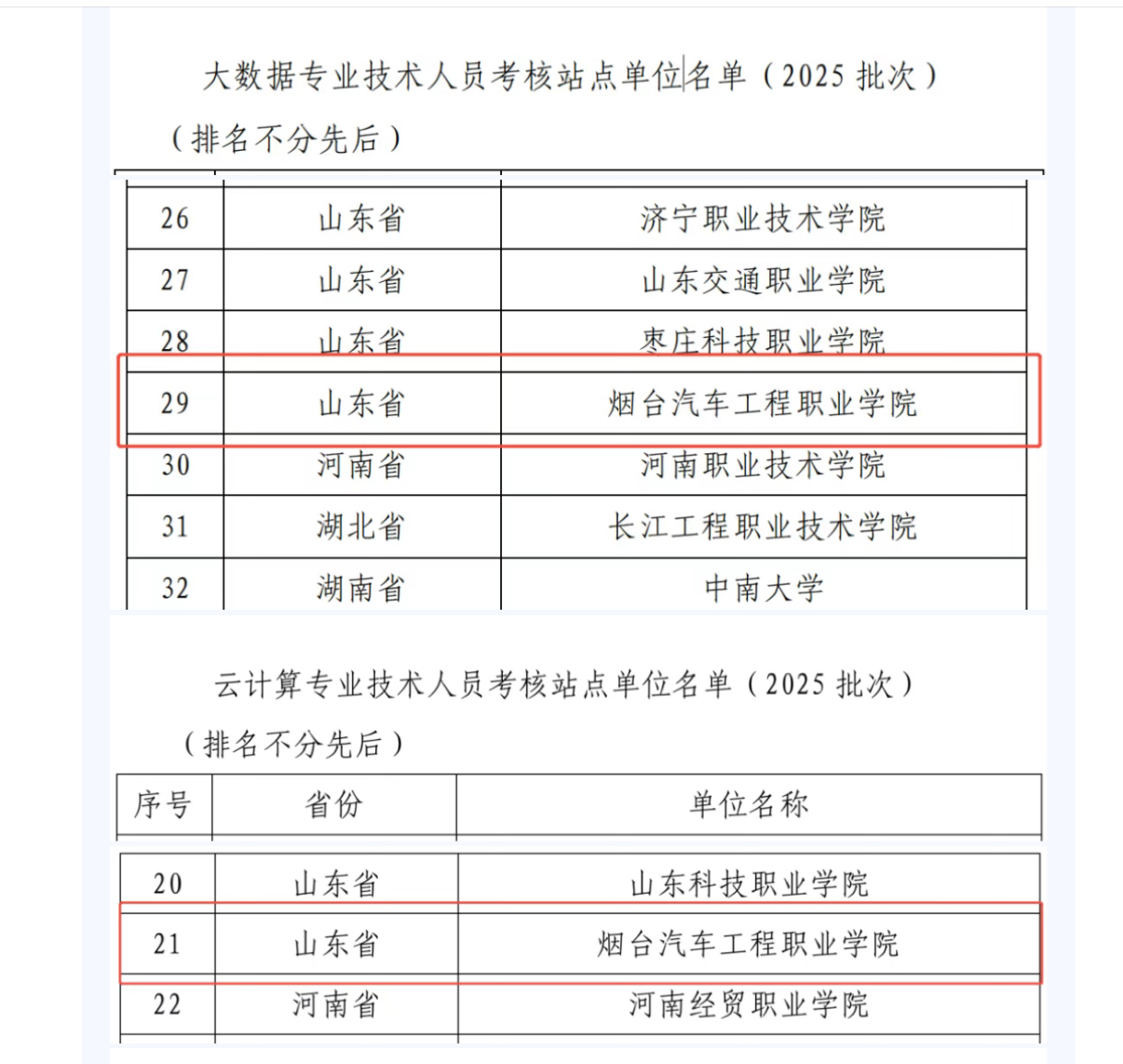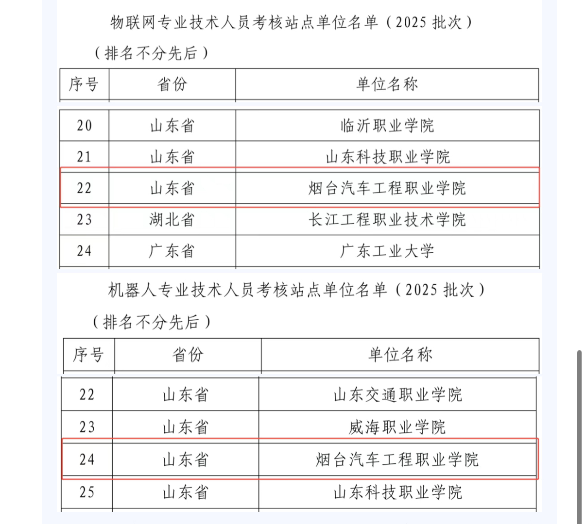 近日,工业和信息化部教育与考试中心依据人力资源社会保障部《专业技术人才知识更新工程数字技术工程师培育项目实施办法》相关要求,遴选并公布了数字技术工程师培育项目考核站点入选名单。烟台汽车工程职业学院成功入选大数据技术、云计算技术、物联网技术、机器人技术四大领域考核站点,实现数字技术核心方向考核站点的“全覆盖”。