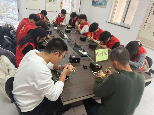 为厚植中华优秀传统文化底蕴,激活非物质文化遗产的当代生命力,12月16日,烟台汽车工程职业学院机电工程系学生管理党支部联合福山区委宣传部、城西社区党总支,组织“书海拾贝”传艺启梦服务队、“向阳花”志愿服务队志愿者深入福山区清洋街道城西社区,开展葫芦烙画非遗传承活动。