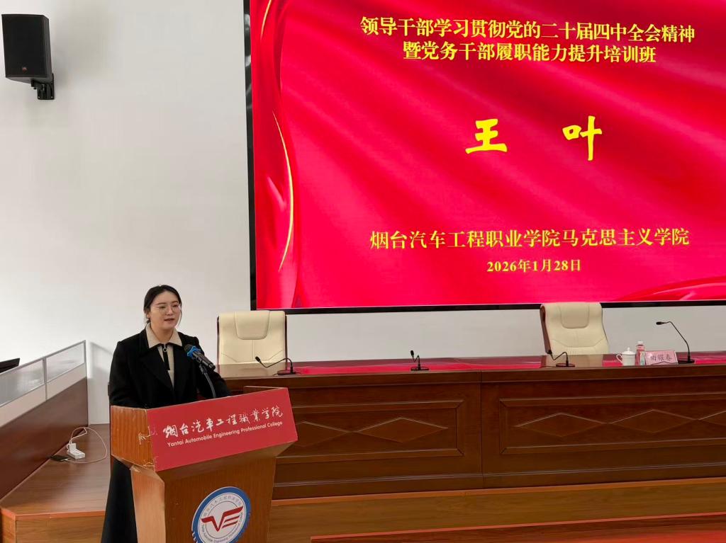 为深入学习贯彻党的二十届四中全会精神,全面提升领导干部政治素养与党务干部履职能力,1月26日至28日,学院在第五会议室举办领导干部学习贯彻党的二十届四中全会精神暨党务干部履职能力提升培训班。学院党委书记秦桂建出席开班式并作专题辅导报告,党委副书记曲耀春出席结业式并作总结讲话,学院各党总支、直属党支部、党支部班子成员和副处级及以上领导干部参加培训。