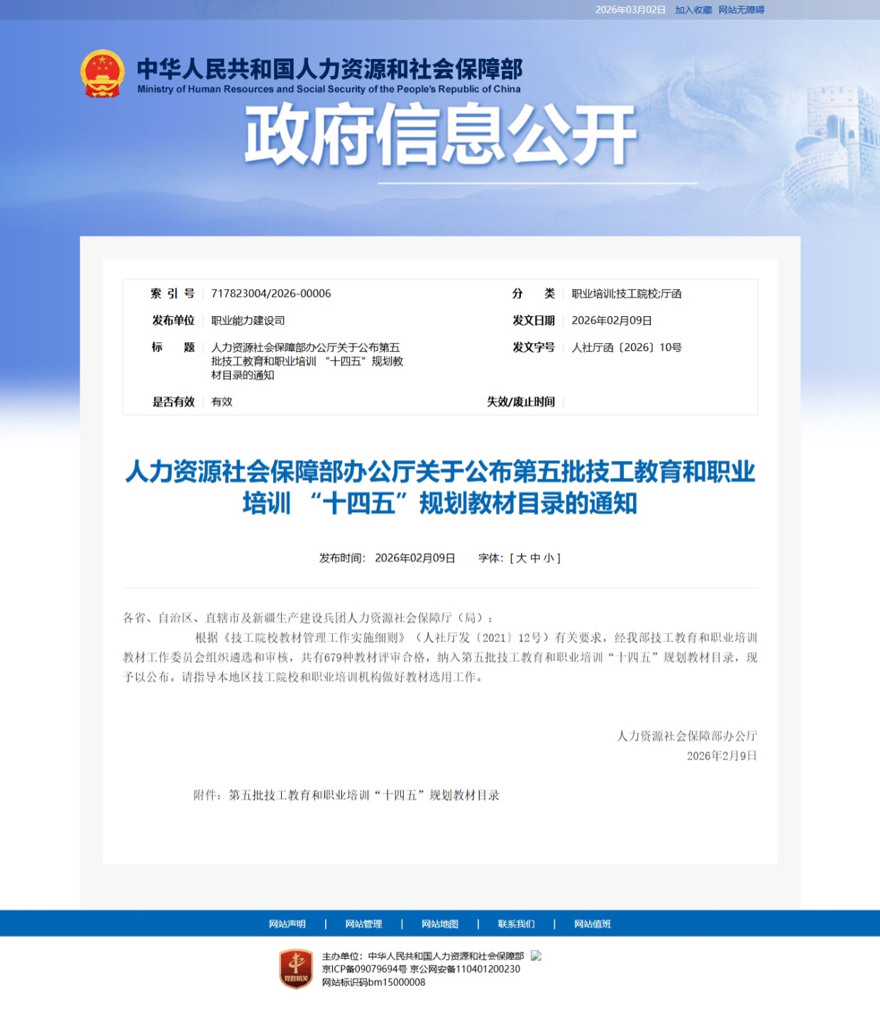 2月9日,人力资源社会保障部办公厅正式公布第五批全国技工教育和职业培训 “十四五” 规划教材目录。此次入选教材经技工教育和职业培训教材工作委员会严格遴选与审核,全国共有 679 种教材通过评审。其中,由我院车辆运用工程系纪建平老师担任第一主编的《汽车精致修复理实一体化彩色教程》成功入选,实现了我院在全国技工教育和职业培训规划教材建设领域的重要突破。