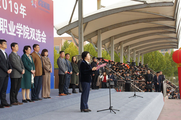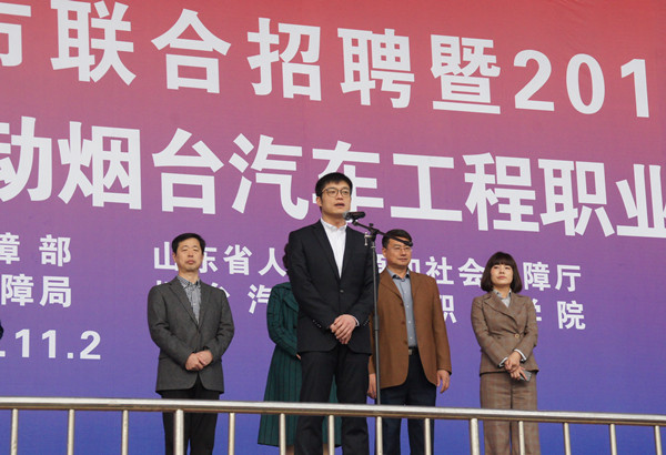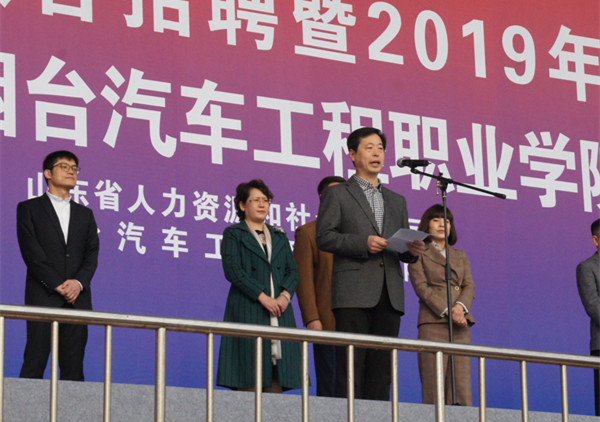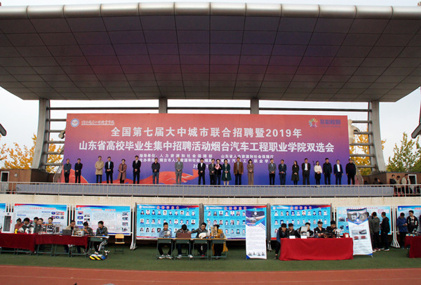 11月2日上午,由国家人力资源社会保障部全国人才交流中心、山东省人力资源和社会保障厅授权举办,烟台市人力资源和社会保障局、烟台汽车工程职业学院承办的全国第七届大中城市联合招聘2019年山东省高校毕业生集中招聘活动烟台汽车工程职业学院双选会在学院东体育场举行,军体拳表演拉开了开幕式帷幕,学院副院长姜义昌主持开幕式,山东省人社厅高校毕业生就业处董廷杰处长、烟台市人力资源和社会保障局副局长于腾和学院党委书记李翠玲先后致辞。