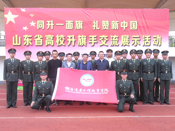 10月11日至14日,学院18名国旗护卫队员赴临沂参加由山东省国防教育协会主办、临沂大学承办的“同升一面旗,礼赞新中国”----山东省高校升旗手交流展示活动。我院国旗护卫队荣获“山东省高校升旗手交流展示活动二等奖”,国旗手于浩同学获得“升旗手优秀奖”,带队老师王祖辉获得“优秀指导教师”称号,学生处曲健处长参加了本次活动的颁奖仪式。