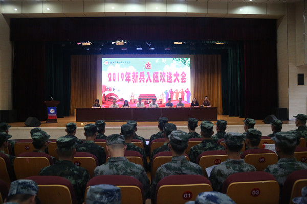 姜义昌副院长致欢送辞,他代表学院党委向从学院光荣应征入伍的52名新兵表示热烈的祝贺。他指出,参军的学生要以军营为家、以报国为志、以服役为荣,在军营大舞台上发光出彩、绽放青春,并对新入伍的学生提出了三点要求:一要树立从军报国的思想,到部队后要把要满腔热血化为报国之志,用双手托起祖国坚强的钢铁长城,用行动保卫祖国的繁荣与安宁;二要做好吃苦的思想准备,在艰苦的环境中磨练自己,不断提高思想上、工作上、组织上的素质,坚决打造成为一名钢铁战士;三要争做一名合格的军人,以优良的作风、高尚的军人道德风貌,承担起军人的神圣职责。同时,姜义昌副院长表示,学院将协同相关职能部门为入伍大学生做好服务和保障工作,学院将成为入伍大学生永远的家和坚强的后盾。