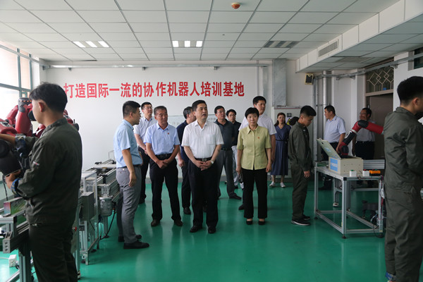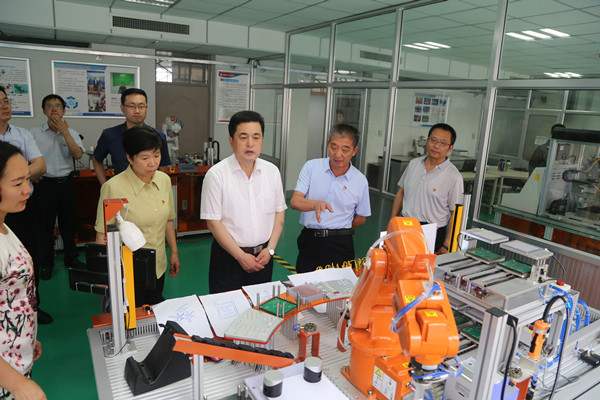 学院领导陪同市领导参观学院工业机器人实训基地