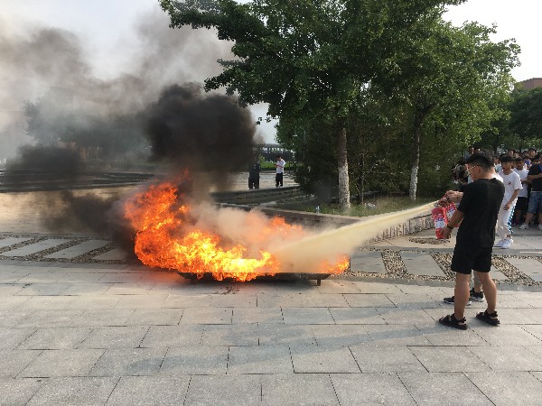 本次活动共分三个环节,一是B区1号、2号、3号公寓的所有师生模拟疏散逃生演练,二是福山消防大队官兵进行消防器材和车辆展示,三是组织师生进行灭火演练。活动一开始,消防车拉响警报,所有师生按照事先制定的疏散预案要求,在疏散引导员的带领下,用湿毛巾捂住口鼻,俯身低行奔下楼梯,穿过浓烟有序的紧急疏散撤离。在规定的时间内,近2500名师生全部疏散至安全区域,整个疏散演练过程行动迅速有序,脚步急促不慌乱。集合完毕后,保卫处分管负责人对疏散演练环节进行简短点评,随后请福山消防大队官兵展示了各种消防器材的使用方法,高层喷水车更是震撼的展示了自身的工作性能,引起现场师生一阵欢呼。最后,消防官兵讲解了灭火器的使用方法并进行了演示,保卫处全体人员配合消防官兵组织所有师生将750具灭火器全部喷射完毕,至此,本次活动所有环节全部顺利结束,演练取得圆满成功。