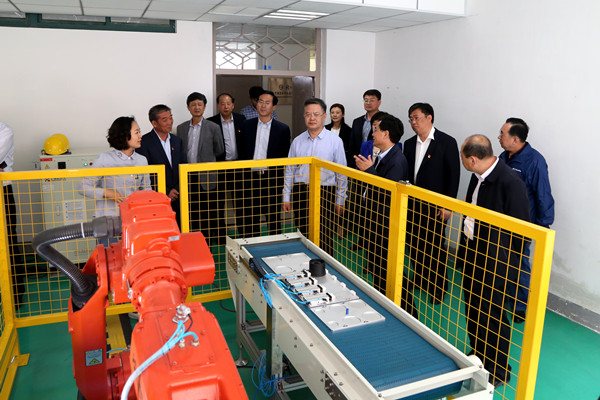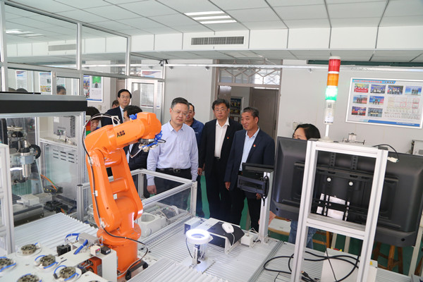 李翠玲书记陪同白皓副厅长一行参观学院实训中心