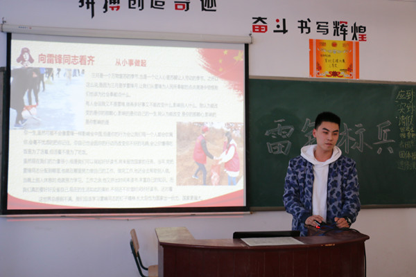 在评选活动中,以班级为代表的雷锋榜样们齐聚一室,大家纷纷上台演讲,讲述着自己的亲身经历,有的同学说到:“雷锋月”我去看望了老人,让我懂得了奉献与珍惜;有的同学说到:来到信控系,我爱上了助人为乐,被帮助人的一个微笑都让我内心充满希望;有的同学说到:新的学期让我感受到改变正在发生,原来每天坚持做一件善意的小事,我的生活会这么开心与温暖。