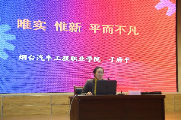 活动的第二部分是由宣传部于府平老师用PPT方式向学生讲解学院的校园文化。宣讲人展示了大量文字图片信息,分成几个版块向学生详细介绍了学院以文化人、以文育人的特色校园文化。一是“唯实惟新 平而不凡”文化育人理念,二是汽车蓝领文化育人系统的构成,三是汽车蓝领文化的实施途径。于府平老师从上述三个方面入手,针对同学们所关心的学院的历史、现状、文化进行了详细的描述,并用生动活泼的真实案例向学生们宣讲了学院文化育人的丰硕成果。讲座持续一个小时,赢得了同学们的赞扬。
