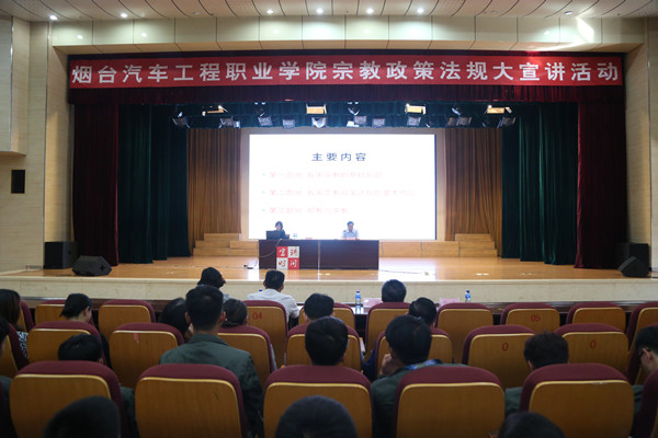 本次讲座邀请烟台市民族宗教局宗教二科科长孙静主讲。她用近一个半小时时间,讲解了我国宗教的基础知识、我国宗教政策法规的基本内容和宗教与邪教三个方面的基本知识;从马克思主义政党对宗教的观点出发,着重就宗教的本质、宗教的基本特征、我国宗教的总体形势、当前我国宗教领域面临的新情况新问题、如何认识理解“依法管理宗教事务”、如何认识理解“积极引导宗教与社会主义社会相适应”等问题进行了全面的阐述和讲解,引导师生在对待宗教的基本态度和原则上树立马克思主义宗教观,着重强调了合法宗教活动的条件、在宗教场所外从事宗教活动的非法性以及共产党员不能信仰宗教的政策要求等。讲座既有政策依据、理论高度和典型案例,又紧密结合当前各项工作实际的民族宗教法规有关知识、非法宗教活动的主要表现形式以及如何遏制宗教极端思想的影响渗透等内容。
