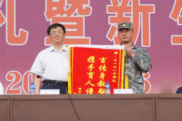 随后,李广院长代表学院向承训部队赠送了锦旗,感谢部队对我院军训工作的大力支持。
