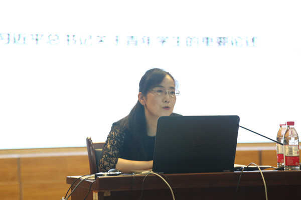 郭金玲在就习近平关于青年学生的论述进行讲解时,着重从“理想信念”、“责任”、“奋斗”与青年息息相关的三个关键词引出,进而阐释理想信念指引人生方向、决定事业成败;生逢其时、也重任在肩的神圣而光荣的责任;奋斗是青春最美的底色,奋斗的青春最美丽。