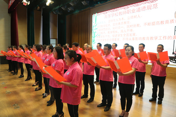 电子工程系全体教师带领全场教职工诵读《高等学校教师职业道德规范》