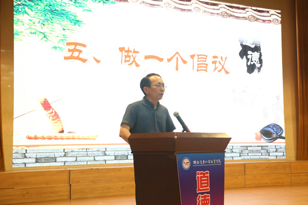 为深入学习贯彻习近平总书记在北京大学师生座谈会上的讲话精神,引领教师积极争做“四有”好老师,建设一支爱岗敬业的教师队伍,5月30日下午,学院在图书馆报告厅举办“牢记使命 立德树人”道德讲堂活动,学院领导、部门负责人及全体教职工参加了活动。