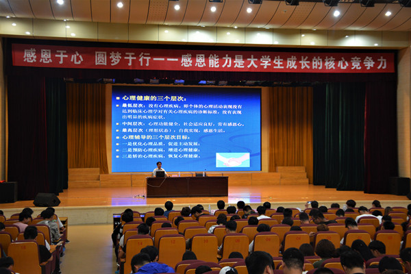 为进一步增强我院大学生心理健康素质,提升大学生心理健康教育工作水平,培养学生的感恩能力,按照心理健康节活动方案安排,学生处于5月25日在学院报告厅举办《感恩于心 圆梦于行一一感恩能力是大学生成长的核心竞争力》专题讲座。本次讲座邀请聊城大学心理健康教育与咨询中心主任、聊城大学首席心理咨询师、山东省省级大学生心理健康示范中心项目负责人赵富才教授主讲,各系分管学生工作副主任、班主任以及学生代表等800余人参加了讲座。