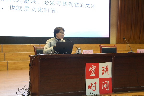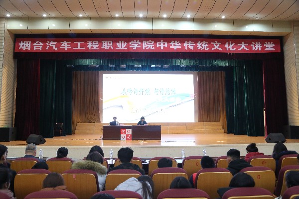 为深入学习宣传贯彻党的十九大精神,用中华优秀传统文化滋养学生心灵,涵育学生品行,推进文化育人工作,12月13日下午,学院在报告厅举办2017年中华优秀传统文化大讲堂,特邀烟台工程职业技术学院基础教学部主任牟岩教授来校,作了一堂《从吟诵开始,与诗结缘》的中华优秀传统文化讲座。讲座由宣传部负责人主持,近千名师生到场聆听了讲座,感受了经典诵读的无穷魅力。