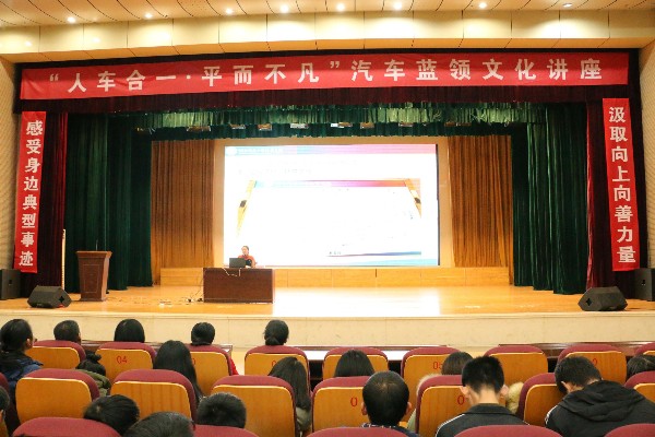 学院宣传部在报告厅举行了“道德模范在身边”暨“人车合一 平而不凡”汽车蓝领文化宣讲会