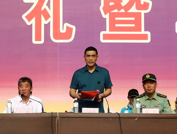 随后,尹桂瓒院长代表学院向承训部队赠送了锦旗,感谢部队对我院军训工作的大力支持。