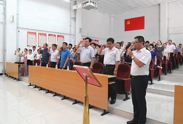 全体党员在招生就业处党支部书记王平同志的带领下庄严宣誓