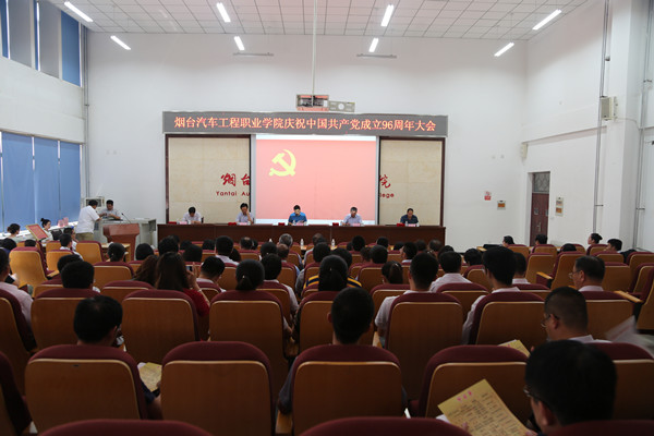 首先,全体党员在招生就业处党支部书记王平同志的带领下庄严宣誓,重温入党誓词,进一步坚定了为共产主义事业奋斗终身的理想信念。随后,党委副书记、副院长于波宣读了《中共烟台汽车工程职业学院委员会关于表彰先进基层党组织、优秀党支部和先锋共产党员、优秀党务工作者的决定》, 对第一党总支等5个先进基层党组织、党群党支部等11个优秀党支部、赵桂平等73名先锋共产党员和由丽娟等12名优秀党务工作者进行了表彰。院领导为受表彰的先进基层党组织、优秀党支部和先锋共产党员代表、优秀党务工作者颁发了奖牌和荣誉证书。