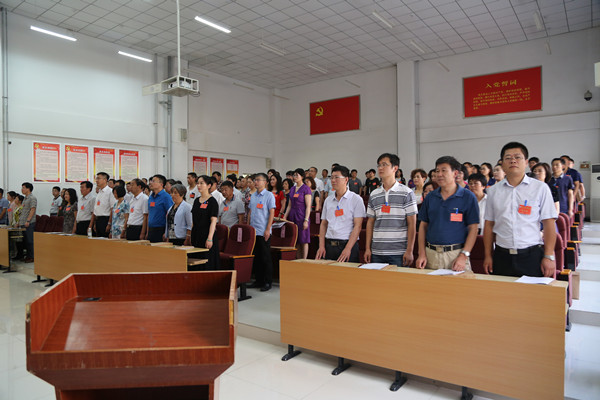 6月16日上午,学院第一届教职工代表暨工会会员代表大会第四次会议第一次会议在第五会议室举行,大会在雄壮的《中华人民共和国国歌》声中开幕。学院领导尹桂瓒、于波、房培玉、孙涛出席会议,142名代表参加会议。会议由学院党委副书记、副院长、工会主席于波主持。