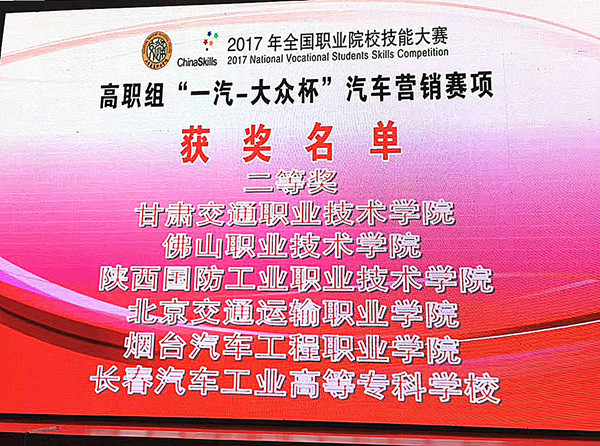 本次大赛是全国高职院校汽车营销专业规模最大、规格最高的技能竞赛,来自31个省、市、自治区、建设兵团的62支代表队展开激烈角逐。比拼过程中,我院选手通过“汽车营销基本技能竞赛”、“汽车销售综合技能竞赛”和“汽车营销与策划”三个子赛项的比赛考核,在商务汽贸、车险承保、商务汽修等理论环节和需求分析、产品展示、异议处理等实践环节及营销活动的策划展示环节均表现出众。最终,选手们以扎实的专业能力和良好的现场发挥,赢得评委和兄弟院校的认可与肯定,极大的提升了我院汽车营销专业在统计院校、行业的知名度和影响力。