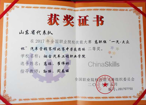 6月6日,从山东交通职业学院全国职业院校技能大赛(高职营销组)的赛场上传来喜讯,由我院15级汽车技术服务与营销专业的高瑶、崔伟斌同学组成的参赛队发挥出色,首次跻身国赛即荣获二等奖,实现了我院在该赛项上的新突破。