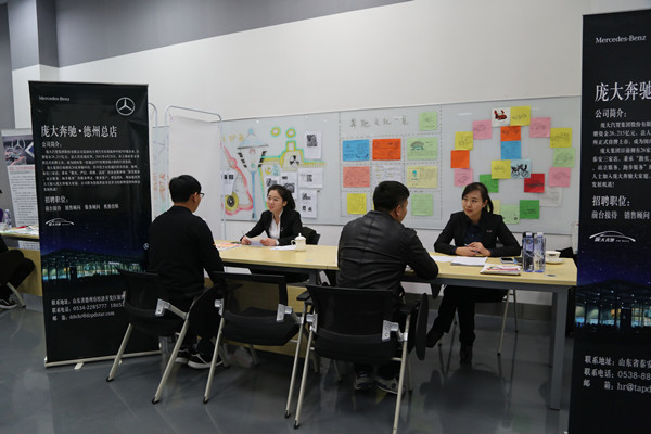 会议开始,姜义昌副院长首先代表学院致欢迎辞,并预祝戴姆勒铸星教育项目——烟台基地校园双选会取得圆满成功。之后,王亮先生、高奇超先生、葛玉宁女士和烟台之星校友李小得分别对戴姆勒铸星教育项目的理念、汽车营销的前景、烟台之星的概况及各自的亲身经历对大家做了简短的介绍。接下来双选会面试安排在戴姆勒铸星项目培训中心,整个现场秩序井然,气氛活跃,姜义昌副院长和邹德伟主任在与参会学生交谈中叮嘱他们好好表现,珍惜机会。 14级戴姆勒铸星班的学子们,也不负众望,在各用人单位面前充分展示自己的专业素养。经销商对双选会的组织表示特别满意,对学生的综合素质给予了很高的评价。