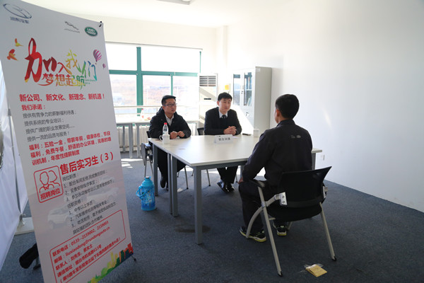 启动仪式后,各地经销商对2014级捷豹路虎班学员进行了面试交流。捷豹路虎招聘工作由捷豹路虎上海培训中心统一组织,是学员修完学业经考核合格后,面向国内的捷豹路虎4S店推荐就业岗位。双选会期间,校企双方还从2015级学生中选拔确定了30名学员作为新一届捷豹路虎班的学员。