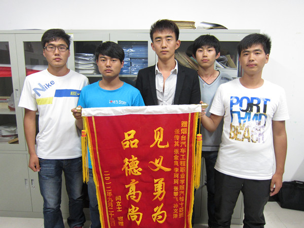 学院车辆运用工程系五位同学2012年在海边勇救落水女子,2013年入选福山好人,2013年被评为烟台市见义勇为先进群体