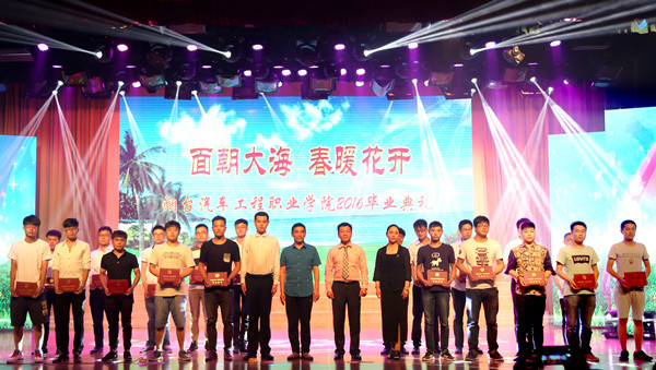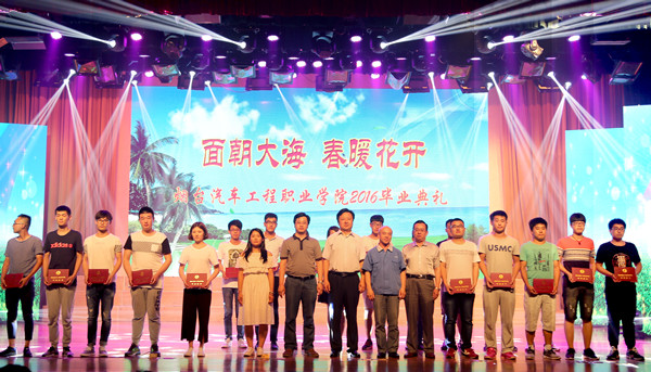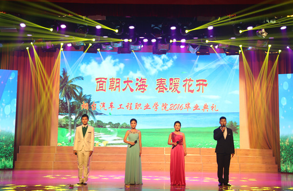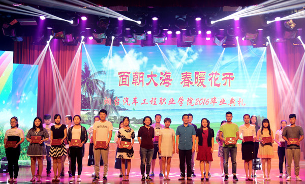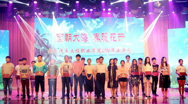 相识犹如昨日,可离别转眼就在眼前。毕业典礼开始前,循环播放《告别母校》视频,视频呈现了2016届毕业生的校园生活剪影,一张张照片,一幕幕景象,记录着生活的点滴,也见证了岁月的流逝,将毕业生们三年的大学时光缩影在大屏幕上。初夏清爽宜人的美丽校园,繁茂的枝叶琐碎了月光,光影缝隙间焦灼了彼此湿润的眼眶,我们共同为相逢的幸运喜悦,今天却为即将到来的分离而忧伤。芳华若水,流光几度,在大学的点点滴滴,酸甜苦辣,丰盛和完整了彼此的人生。开场舞《春暖花开》拉开了毕业典礼的帷幕。行行重行行,与君离别情。在即将远行的时刻,院长、恩师及毕业生代表送上了殷殷嘱托、深情的祝福和惜别。院长尹桂瓒讲话,他代表学院,向圆满完成学业的同学们表示祝贺,向无私奉献的教职员工表示感谢。他表示,作为见证并亲身体验学院跨越发展的一届学子,你们和学院一同成长。无论是课堂上实训车间里的求知解惑,社会和企业里的实践锻炼,还是在运动会和艺术节上的精彩表现,都已成为我们每个人青春年华的一部分,也写入了学院发展的历史。在学子们即将离开校园的时候,尹桂瓒院长与毕业生们重温办学理念和校训作为共勉,满怀深情地提出殷切期望:一是“点亮人性之美,发掘潜在之能”,希望你们能成为追求美好、道德高尚、情趣高雅、品行端正、人格独立、为人正直、富有爱心的人;成为身怀技能和特长、辛勤工作、奉献社会、担当家庭的人;二是牢记校训“平而不凡”。大家不论成为领导者、管理者还是一线工人,都是普通人、平凡人,都能在平凡岗位上,做出不平凡的业绩,实现人生的价值和梦想;三是人生如车。要有明确的方向、良好的品质、充足的动力、安全的性能,驶出各自幸福出彩的人生。