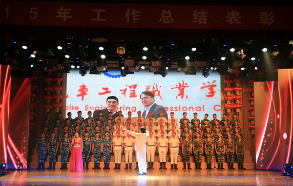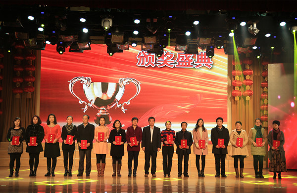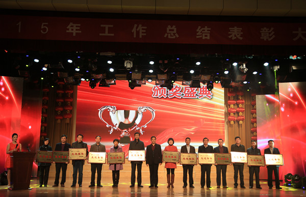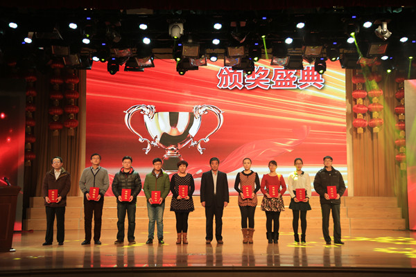 会上,首先播放了学院2015亮点工作回望,以视频形式回眸了学院2015年度十大亮点工作,从“三严三实”专题教育、依法治校、文化育人、名校建设、教学改革、校企合作等方面梳理回顾了2015年我院工作所取得的成绩。随后,党委副书记、副院长于波宣读了《关于表彰2015年先进集体和先进个人的决定》。在主持人宣读了获奖集体及人员名单后,院领导依次为先进集体、师德标兵、优秀教育工作者、优秀辅导员和班主任颁奖。颁奖仪式结束后,尹桂瓒院长致辞,他首先向受到表彰的先进集体和个人表示衷心祝贺,向为学院发展付出辛勤劳动的教职员工表示诚挚的敬意,并代表全院师生向技校的老师们表示衷心的欢迎,希望两校合并后能团结一致、戮力同心,共谋发展。他在致辞中说,2016年是学院名校建设验收和第二轮人才培养工作评估之年,我们要努力实现历史性转变,顺利通过名校验收和人才评估;2016年是学院“十三五”发展规划的开局之年,我们要狠抓办学质量,推进内涵发展,提高管理科学化水平,深化教育教学改革;2016年还是举办高职十周年,我们要理性认识高职十年走过的道路,总结经验,弥补不足,努力将学院推向一个新的发展高度。他在致辞最后对全体教职员工提出了“振奋精神,凝心聚力,乘势而上,再谱新篇,以积极的姿态和饱满的热情,开创学院更加绚烂的明天”的殷切希望。
