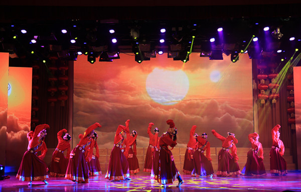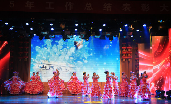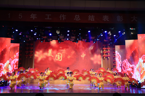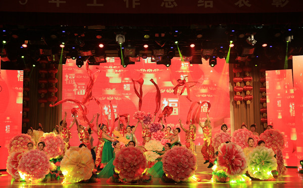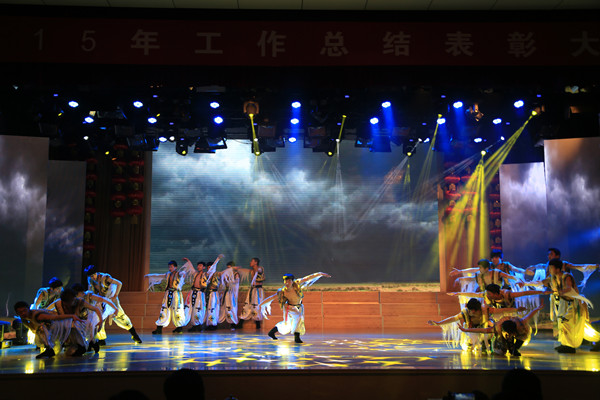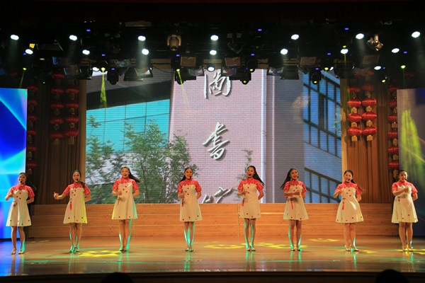 总结表彰结束后,伴随着开场舞《盛世花开满园春》欢快热烈的节拍,“收获希望,放飞梦想”师生联欢会正式拉开序幕。歌曲《春天的祝福》让大家提前感受到了春的蓬勃气息。由艺术团主持队精彩演绎的音舞快板《一路高歌向辉煌》表达了师生对学院三十年辉煌征程的由衷礼赞;机电工程系女教师表演的舞蹈《中国美》,以翩跹的舞姿诉说着对祖国美好未来的赞美之情;歌伴舞《梦想天灯》表现了学院人对梦想的无限憧憬和执着追求;男生表演的群舞《鸿雁》将观众的思绪带到了广阔的草原,那刚劲的舞姿展现了男儿如鸿雁般搏击长空的雄心壮志;萨克斯合奏《天路》以悠扬婉转的曲调让观众欣赏到了器乐之美;健身操《舞动奇迹》动感十足,散发着青春的活力;经济管理系女教师带来的舞蹈《共圆中国梦》抒发了对祖国的美好祝愿;艺术团舞蹈队的女生们表演了藏族舞蹈《心声》,她们身着藏族服装,以婀娜多姿的舞蹈抒发出“唱支山歌给党听”的心声;合唱《打靶归来》表达了青春男儿志在国防、情系军营的壮志豪情;联欢会在《总想走进你心里》的合唱声中圆满落幕。联欢会结束后,院领导与全体演职人员合影留念。