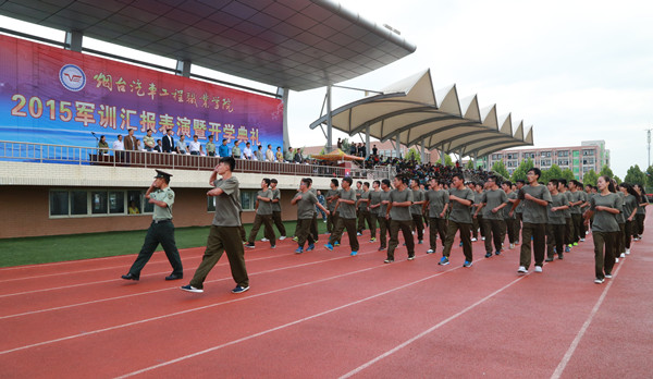 金色九月,秋风送爽。9月12日上午,我院在东体育场隆重举行2015军训汇报表演暨开学典礼。出席大会的领导有:院长尹桂瓒,党委副书记、副院长于波,副院长姜义昌,承训部队团长彭子海、协理员曹俊领。2015级新生及辅导员、全体承训教官参加了大会。大会由党委副书记、副院长于波主持。