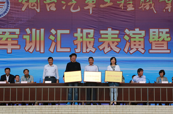 军训汇报表演结束后,我院对今年军训工作先进单位和先进个人进行了表彰,共评选出军训先进单位3个、军训先进班集体24个、军训标兵114人、军训内务标兵24人,院领导和部队首长为受表彰的单位和个人颁发了奖状和证书。随后,尹桂瓒院长代表学院向承训部队赠送锦旗,感谢部队对我院军训工作的大力支持。